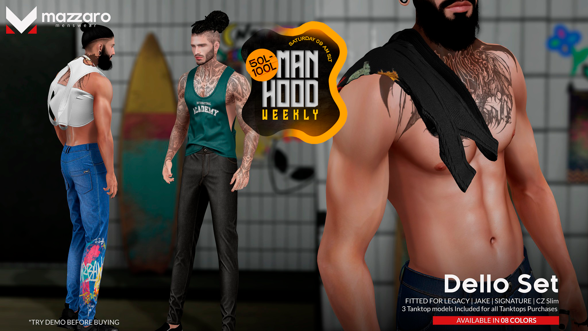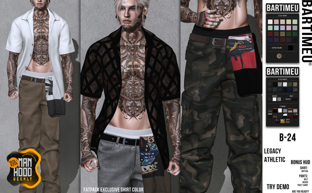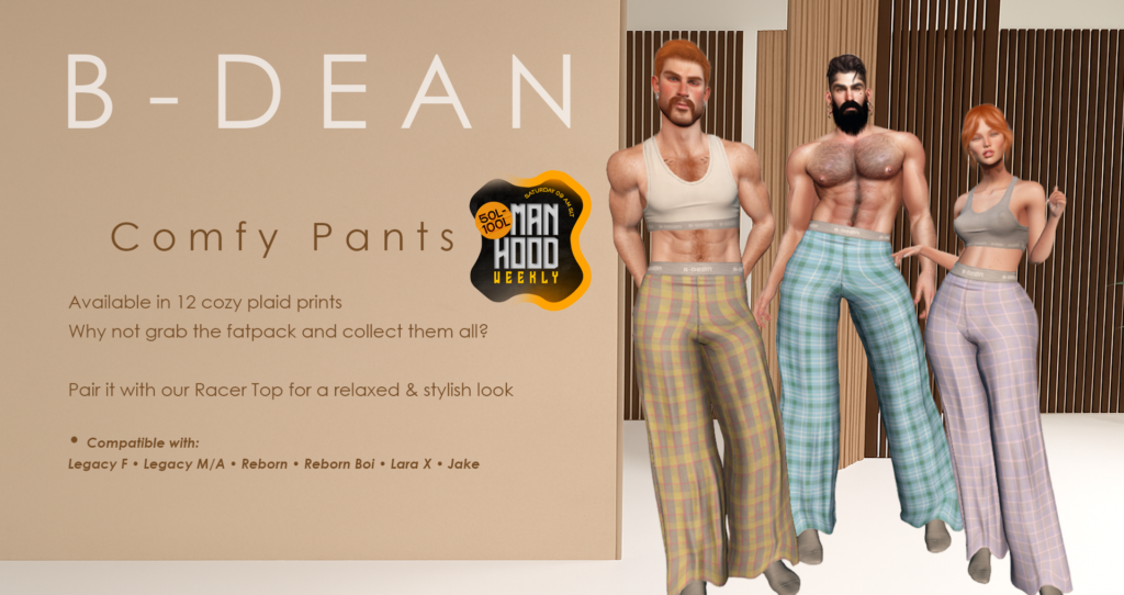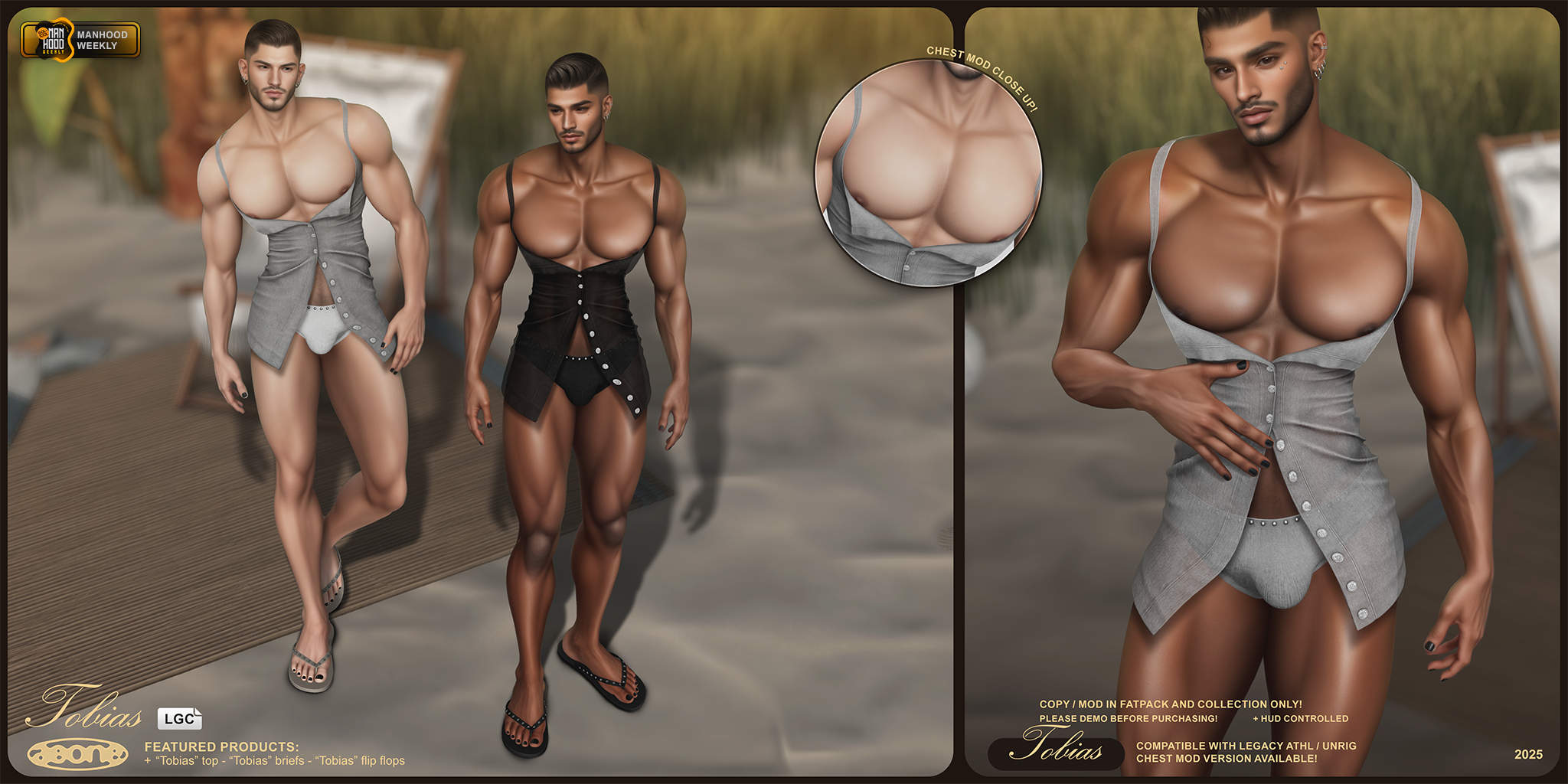 Manhood Weekly is a weekend sales event in Second Life, focused on men’s fashion and accessories. Participating stores offer selected products at discounted prices for male avatars.