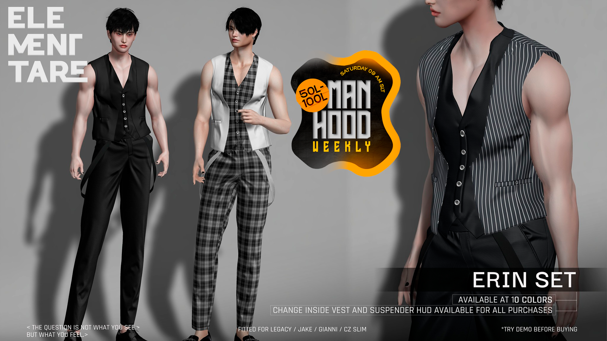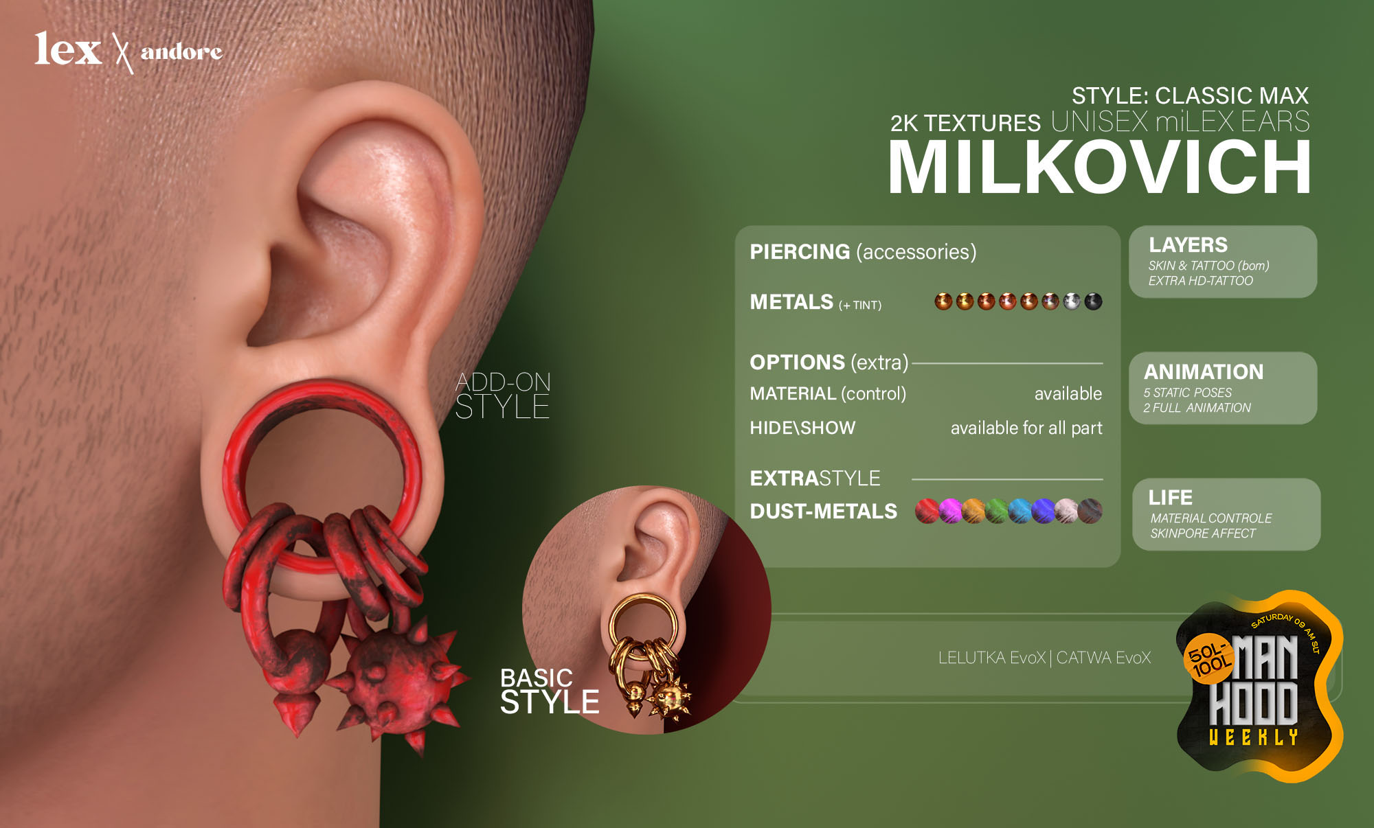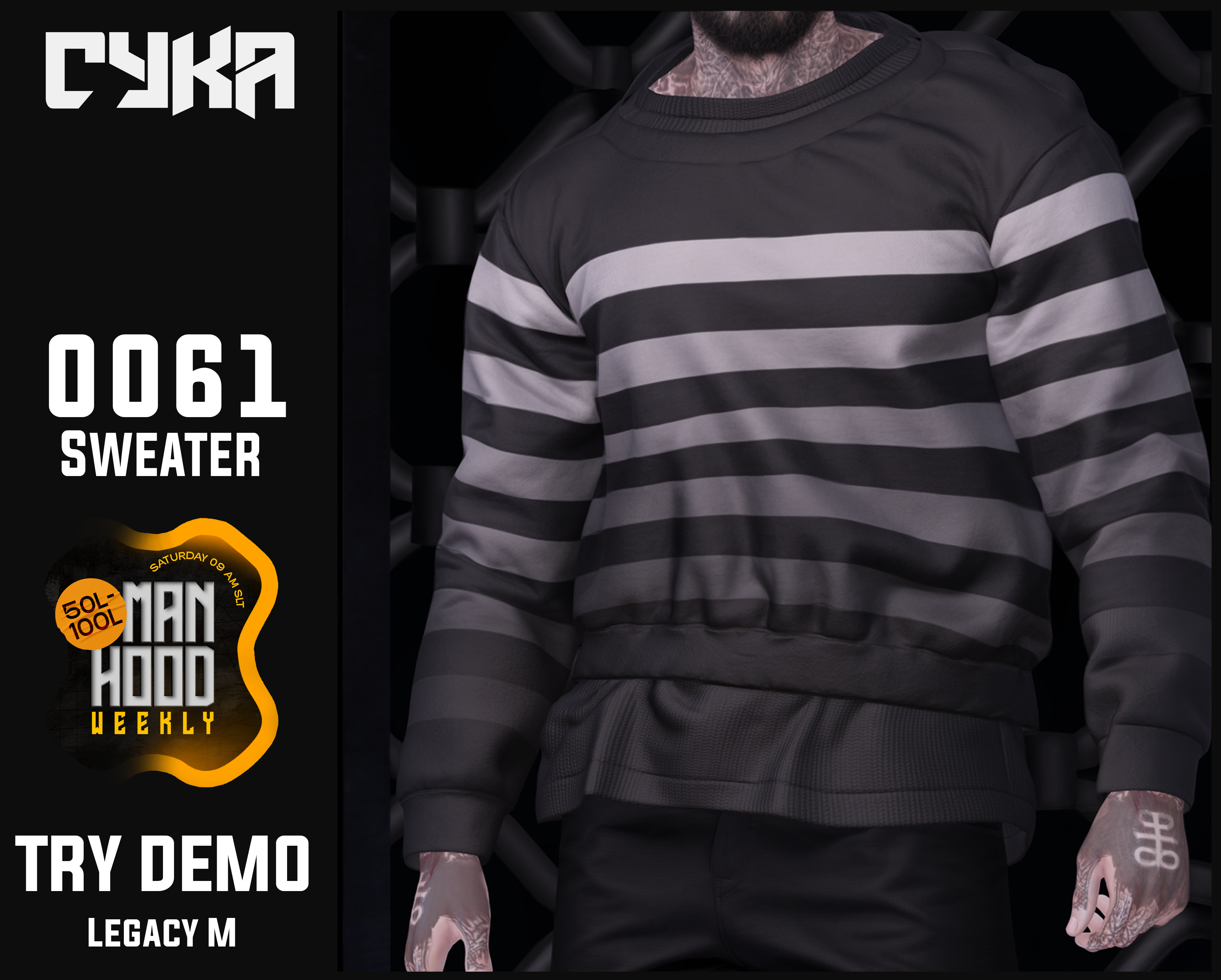 Manhood Weekly is a weekend sales event in Second Life, focused on men’s fashion and accessories. Participating stores offer selected products at discounted prices for male avatars.